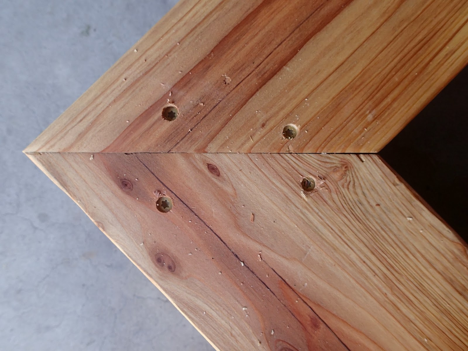 Next drill 4 holes on the top, were the boards come together. Make sure you miss the first screw and you will be drilling into the 4x4 and 2x8. Then screw 3 1/2" screws into the 4 holes and complete with all sides.